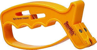 - SCISSORS SHARPENER – The patented scissors sharpener is built into the handle and can be used on right and left-handed scissors. The specially designed “floating” round ceramic rod conforms to the exact angle of your scissors for proper sharpening.