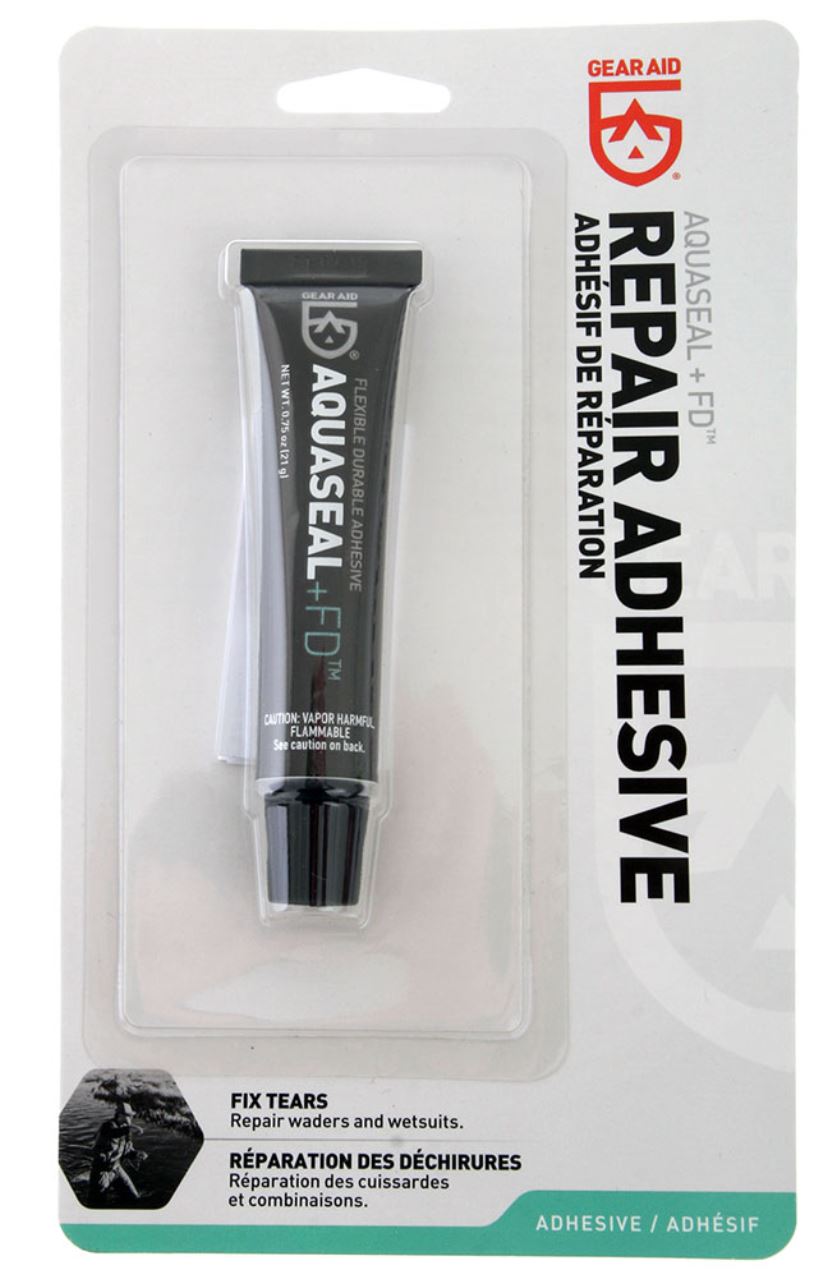 Fix all types of gear failures with Aquaseal FD, a clear, waterproof urethane adhesive. This flexible and durable adhesive for outdoor gear that requires a full range of motion. It also offers excellent abrasion resistance. When you rip your fishing waders on the river or tear your wetsuit while diving through prickly corals, don’t throw it away. Repair it with Aquaseal FD. It’s also useful as a wader seam sealer. Don’t let rips, tears, and holes stop you. Patch it up with the all-purpose Aquaseal FD and stay dry.