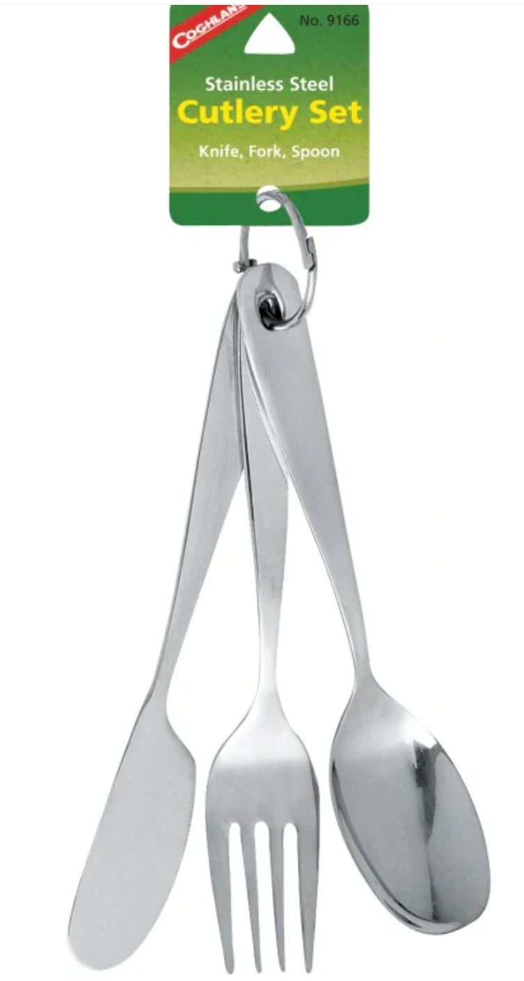 High quality stainless steel knife, fork and spoon set with detachable ring.