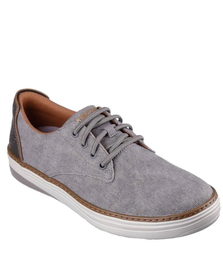 Bring classic style and comfort everywhere in Skechers Hyland - Ratner. This laced slip-on features a canvas upper with a Classic Fit™, an odor neutralizing charcoal infused Skechers Air-Cooled Memory Foam® comfort insole, and Skechers Goga Mat Arch™ cushioning for added support.