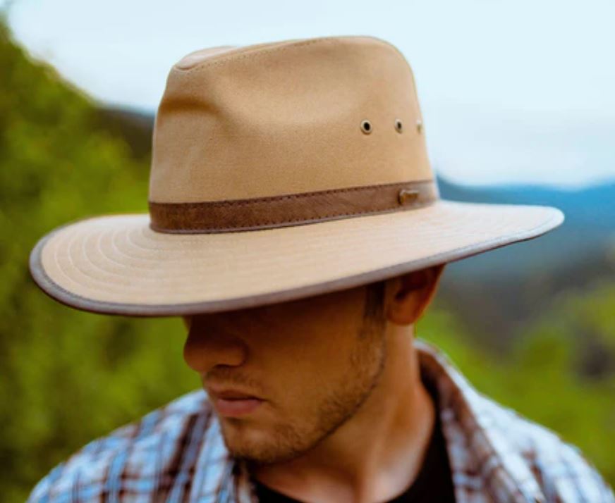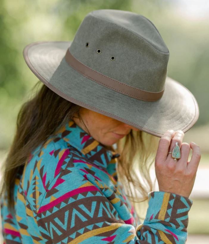 Every adventure lover's favourite, the Flinders hat! This hat is made from canvas with eyelets for improved airflow and a moisture-wicking sweatband. Featuring a wide brim to keep those rays off your face!