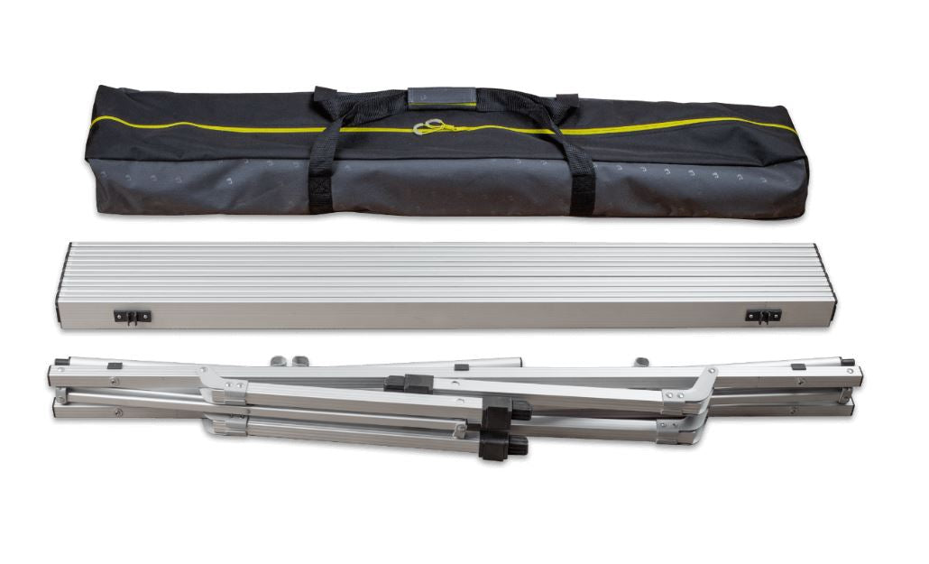 The Slatpac Large is a fantastic family meal table, card table, or preparation surface. Individual leg adjustments ensure the table sits flat on uneven ground and can be adjusted down low for use as a camp coffee table. The fully folding frame and removable tabletop allow everything to pack down small. Individual leg adjustments ensure the table sits flat on uneven ground.